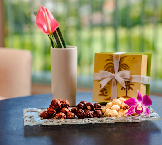 チョコレート・マカダミアナッツは定番のアイテムです。上質のハワイ産マカダミアナッツに、テンパリングした最高級のチョコレートを使用して毎日シェフが丁寧に作り上げるこの商品は、サテンのリボンで結ばれたオリジナル・デザインのボックスに、手で箱詰めされます。チョコレートは、ダーク、ミルク、ブロンド、ホワイトからお選びいただけます。全4種類のチョコレートが入ったミックスや、期間限定フレーバーもございます。サイズは1/2パウンドまたは1パウンドとなります。